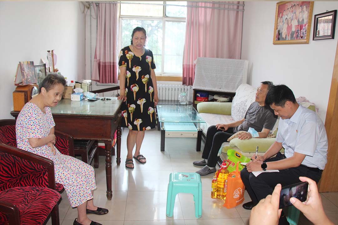 【概要描述】為充分發(fā)揮人大代表緊密聯(lián)系群眾的橋梁和紐帶作用,開展落實(shí)老城區(qū)“進(jìn)萬(wàn)家門、知萬(wàn)家情、解萬(wàn)家憂、聚萬(wàn)家心”活動(dòng)。7月29日上午,洛陽(yáng)市老城區(qū)人大代表、洛陽(yáng)新春都生物制藥有限公司黨支部書記孫建勛,洛陽(yáng)市老城區(qū)人大代表、河南路星工程管理有限公司書記閆毅軍以及老城區(qū)大唐宮社區(qū)的工作人員一同到社區(qū)5戶困難群眾的家中進(jìn)行了走訪與慰問(wèn),同時(shí)為困難群眾送去了油、米、保健品等生活物資。??在走訪過(guò)程中,孫建勛代表與慰問(wèn)群眾親切交流、談心,詢問(wèn)他們的身體、生活、醫(yī)保、家庭等情況,深入了解他們的困難和真實(shí)訴求。并叮囑他們要注意保重身體,鼓勵(lì)他們的家人要勇于面對(duì)困難,對(duì)生活要充滿信心,有困難隨時(shí)聯(lián)系幫助解決。????特別在走訪到一戶困難群眾的家庭情況時(shí),一行人員了解到由于其本人是肢體二級(jí)殘疾,丈夫常年患有乙肝、糖尿病等疾病,三級(jí)殘疾,行動(dòng)不便,常年臥床養(yǎng)病。剛上大學(xué)的女兒也因身體狀況,已經(jīng)休學(xué)了一年多。一家三口每月靠著政府低保補(bǔ)貼700元、丈夫微薄的退休工資承擔(dān)著全家人每月的醫(yī)藥費(fèi),勉強(qiáng)度日,維持著基本的生活。在了解到這一情況之后,孫建勛代表留下了自己的聯(lián)系方式,表示困難群眾可以到新春都制藥旗下的上工強(qiáng)生堂大藥房中醫(yī)門診看病治療,并且承擔(dān)看病期間所有的治療費(fèi)用,盡力幫助他們解決疾病困難。??作為一家醫(yī)藥制造非公企業(yè),新春都制藥始終堅(jiān)持服務(wù)社會(huì),熱心公益事業(yè)、傾情回報(bào)社會(huì)。每年以黨支部書記孫建勛帶頭組織企業(yè)干部人員慰問(wèn)轄區(qū)困難群眾、空巢老人、低保殘疾戶居民,送去米、面、油等慰問(wèn)品。通過(guò)每年的走訪慰問(wèn)活動(dòng),讓困難群眾切實(shí)感受到黨的溫暖,促進(jìn)社區(qū)和諧穩(wěn)定發(fā)展。??人大代表為人民,通過(guò)走訪、慰問(wèn)的形式,送去的不僅是溫暖與關(guān)愛,還有使困難群眾堅(jiān)定生活的信心,以及對(duì)未來(lái)生活的希望,也充分體現(xiàn)了人大代表密切聯(lián)系群眾,了解民情,為人民服務(wù),對(duì)人民負(fù)責(zé)的社會(huì)責(zé)任感,充分發(fā)揮代表作用,同時(shí)也增強(qiáng)了困難群眾的滿意度與幸福感。